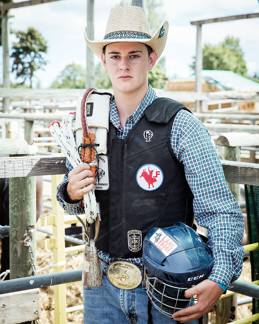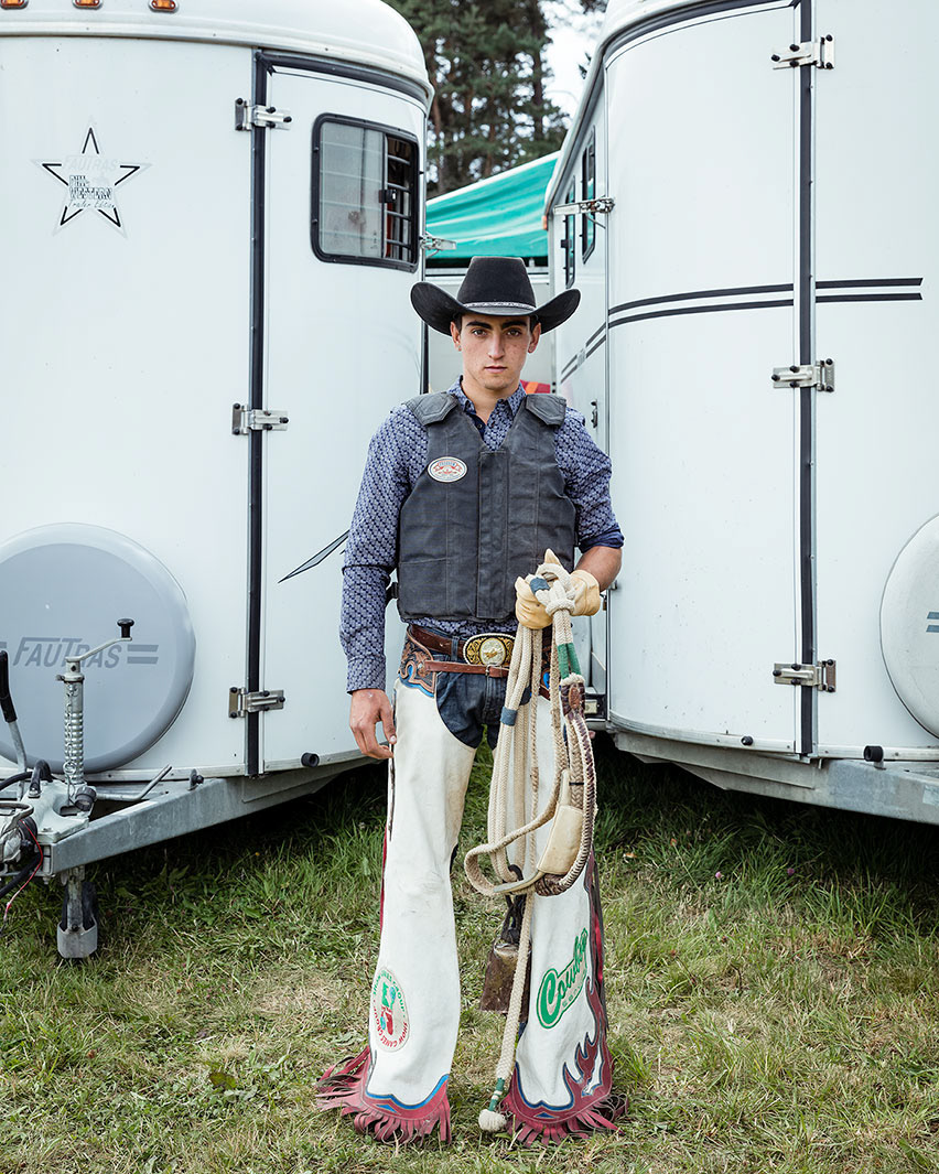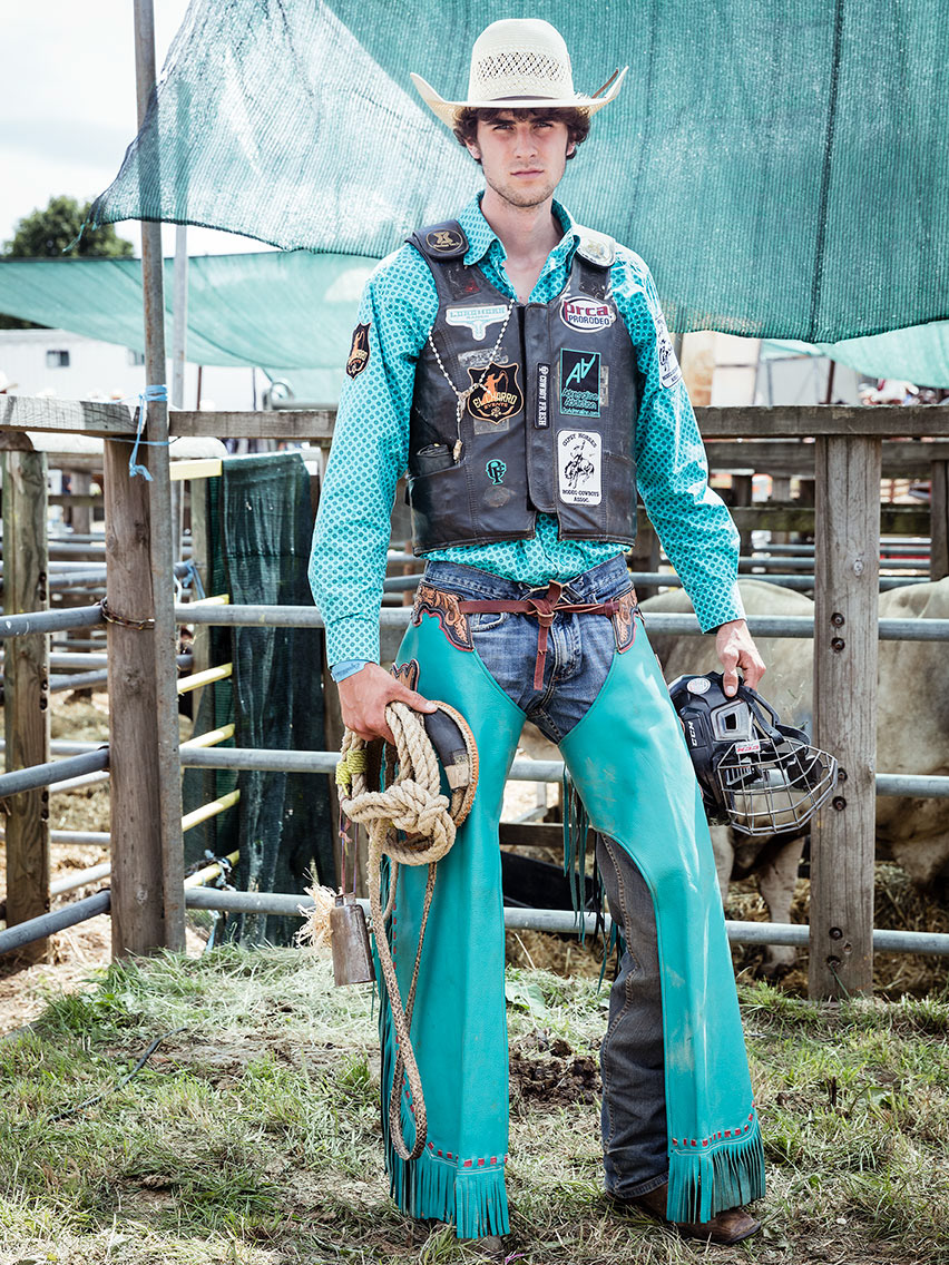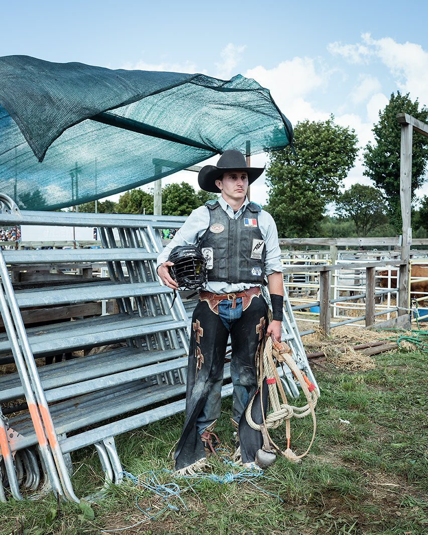 Every year in August, the Equiblues Festival, Ardeche / France, brings together the best of the rodeo and Country music.For the series "The other America" I am attached to do portraits of the participants at the rodeo. Bull Riders must ride a bull and stand with one hand for 8 seconds. For this test, they wear a protective helmet and anti-perforations vests. Bareback Riders must take 8 seconds on a wild bronco holding them also with a hand, and finally the Saddle Bronc Riders who ride a saddled horse on which they must hold 8 second thanks to a rope.